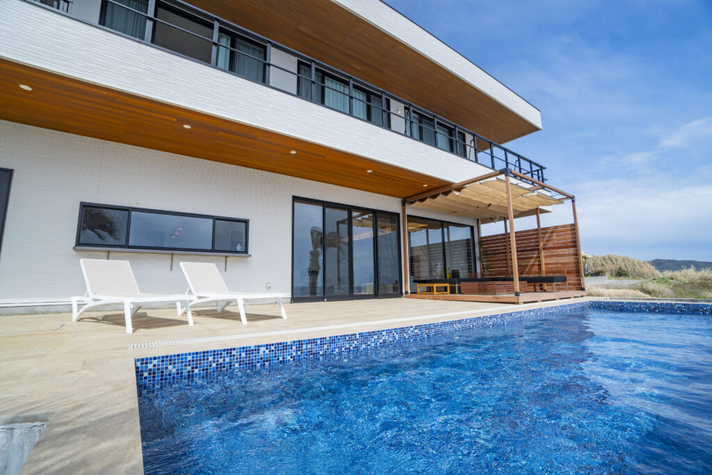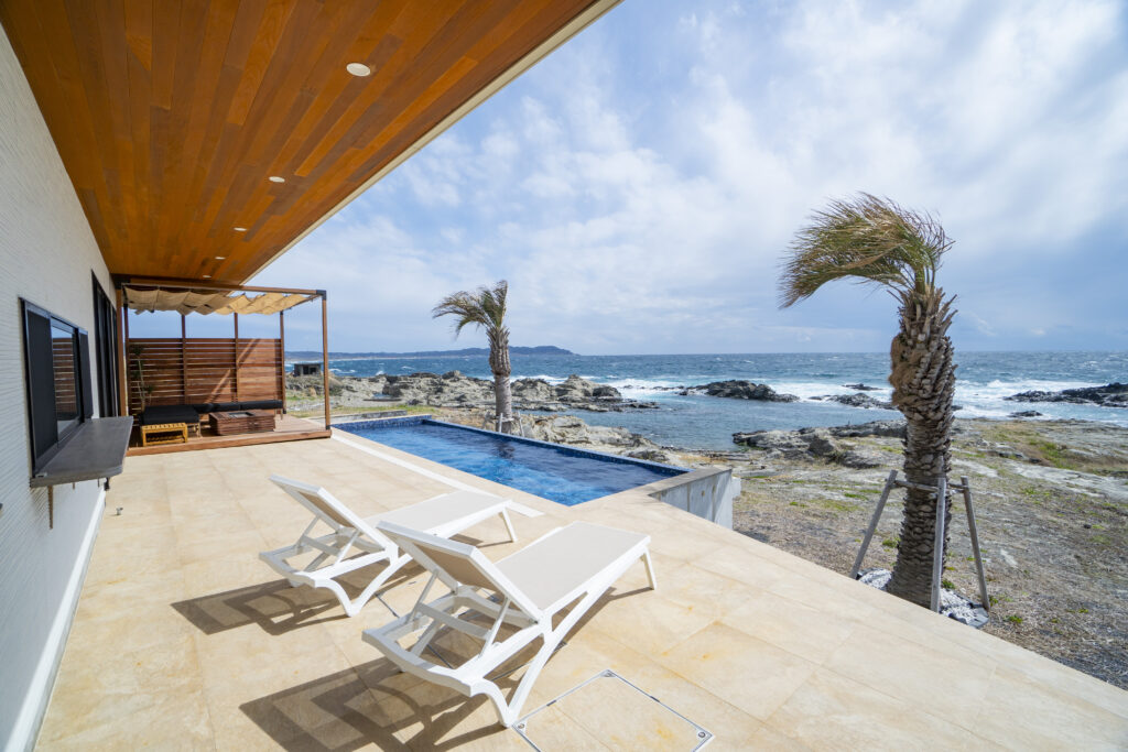 3メートル×10メートル(深さ1メートル)のプールは子供から大人までワイワイ楽しめます。海に繋がっているかのようなインフィニティプールをお楽しみください。